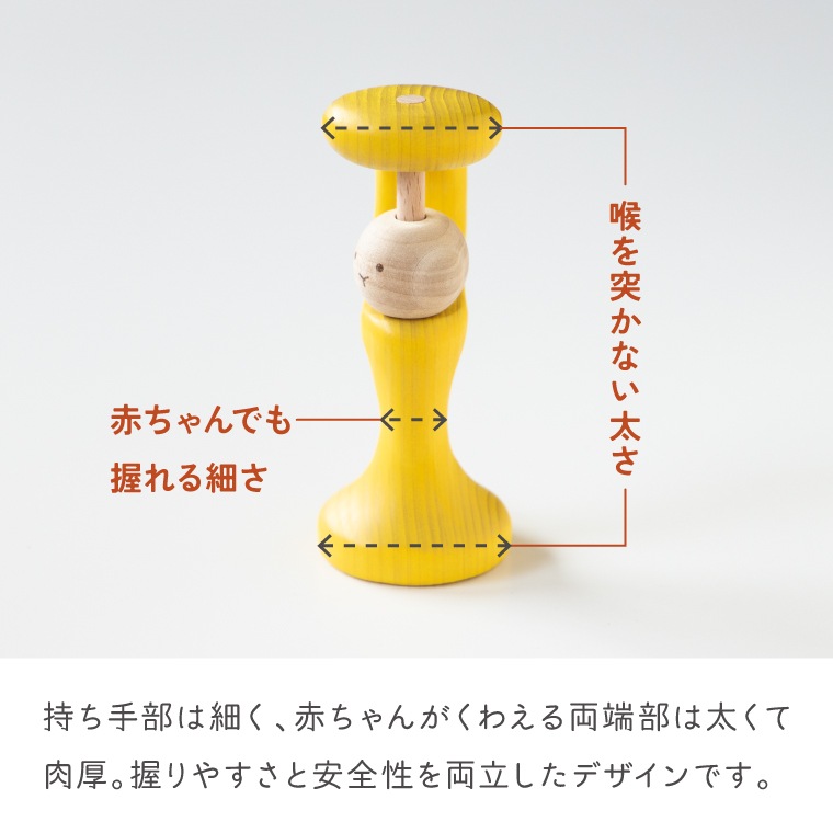 持ち手部分は細めに仕上げており、赤ちゃんの小さな手でも無理なくしっかり握ることができます。