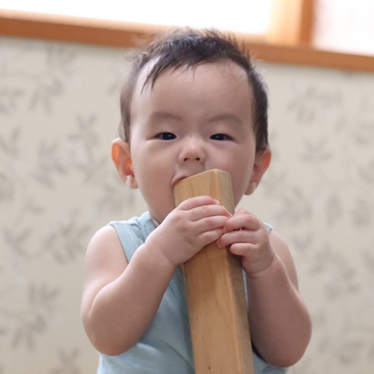 孫の1歳の誕生日に積み木を購入いたしました。はいはいでボールを追いかけるのが大好きな孫のため球形の積み木をさがしておりましたところ貴社のサイトへ行き着きました。 国産の木を使い、口に入れたり投げたりといったことの安全性への配慮が決め手となって選びました。大きさも重さも1歳児の手にもなじむもので、開けると木のいい香りがしてすぐに手に取りまずは口に入れ、次に両手に持ってカンカンと楽しんでおりました。 まだまだ積んで遊ぶことはできませんが、触覚、嗅覚、味覚、聴覚で十分楽しんでいるようで選んでよかったと思っております。
