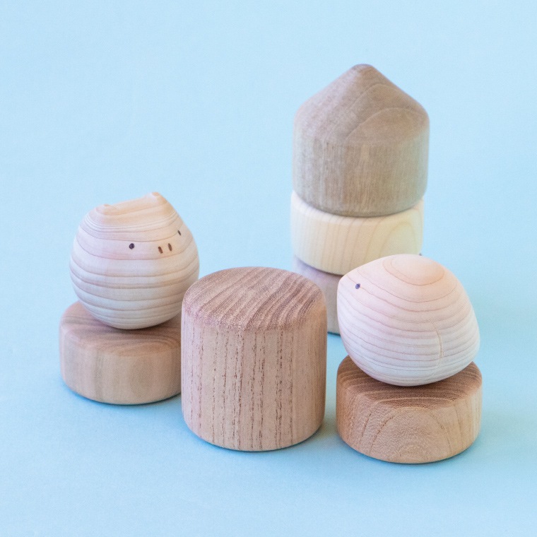積み木に使用する九州産材は、仕入れ状況や時期によって樹種・木の色味が変わります。掲載画像の積み木は撮影当時のセットの一例です。 赤ちゃんがなめたり、水分を含んだ布で拭いたりした場合に、木の色が布や衣服にうつってしまう場合がございます。これらは木の成分ですので、人体には悪い影響はございません。 アニマルに使用しているヒノキ材は、無塗装の場合、気温があがったり暖かい場所に保管しておいたりすると、木の中から樹液が溶け出す場合がございます。害はありませんが、気になる方は「無水エタノール」を染み込ませた布で拭きとるか、紙やすりで削り落とすことでご対処ください。▶木のおもちゃお手入れ方法 |