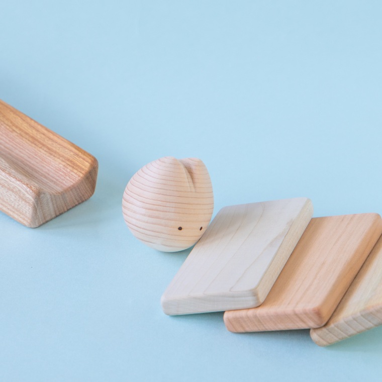 耳や鼻など、それぞれ個性的な形を持つ動物たちは、転がり方も個性的。 まんまるな球にはない、心地よいカラコロ音を奏でながら、不規則に転がります。