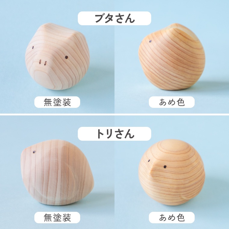 ですので、「無塗装」、「あめ色」どちらのアニマルとも赤ちゃんが舐めても安全です。